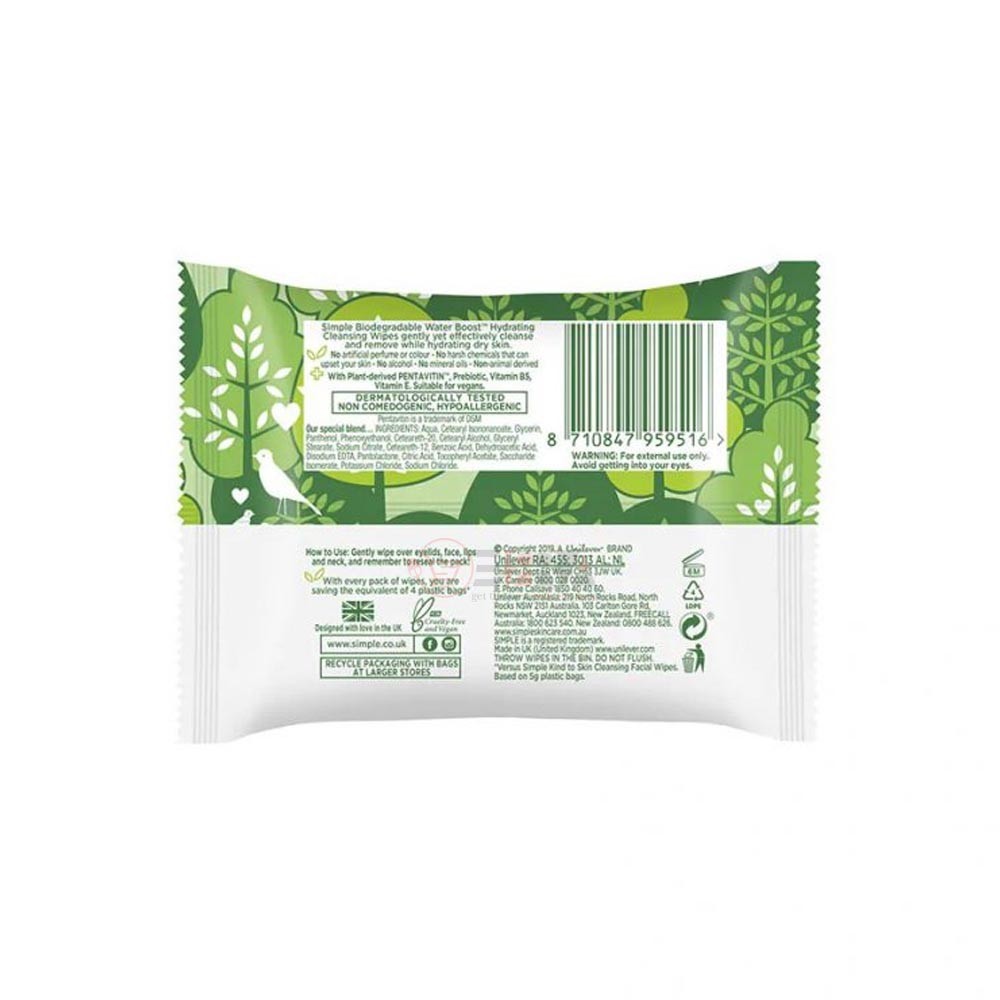 Products details of Simple Hydrating cleansing Biodegradable Micellar Facial Wipes 20pc